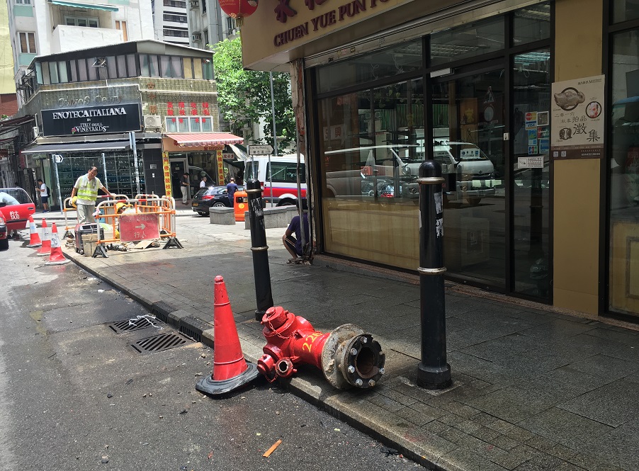 The toppled tyrant hydrant. Photo: Keina Chiu/Coconuts Media