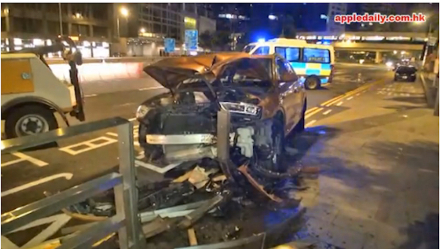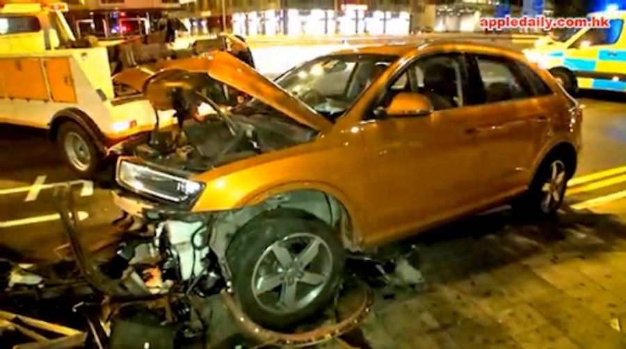 At 1am yesterday, a man suddenly lost control of his Audi as he was driving towards Causeway Bay on Connaught Road Central and crashed into the railings, reports Apple Daily.