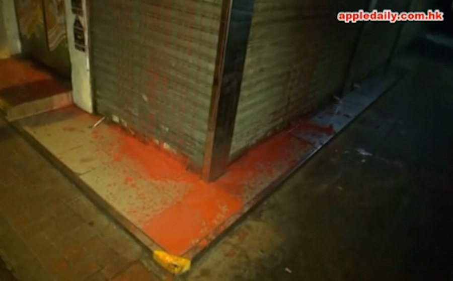 The owner of the shop told an Apple Daily reporter that she doesn’t have any debts or that she is not involved in any business disputes. (Triad gangs are known to splash red paint onto storefronts as an intimidation tactic.)