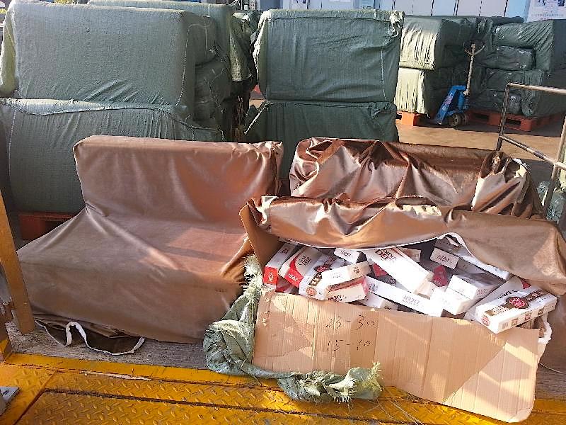 The shipment, which claimed to be made up of 977 cartons of “assorted goods”, was inspected by officials, who found the misshapen sofas containing numerous boxes of cigarettes.