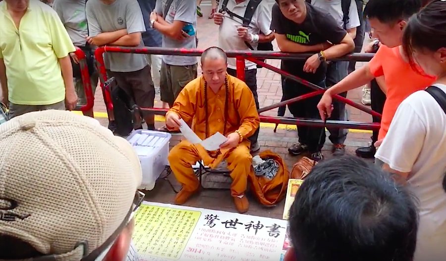 The scam apparently entailed the accomplice buying a book for HKD20 and exclaiming what an excellent bargain it was when passersby were in earshot. She is also said to have made a show of getting a free bracelet, and told the crowd that the monk is a spiritual leader in mainland China.
