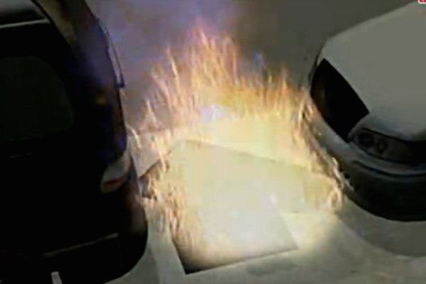 Yesterday at 3am, an explosion rocked Shek Tau Street in Kwai Chung. A “forty-foot dragon” of ball of fire, as Apple Daily describes it, engulfed four cars, charring them slightly (Michael Bay would be disappointed). The explosion, originating from the draining pipes below, was so strong that a manhole cover broke while three others were blown off.