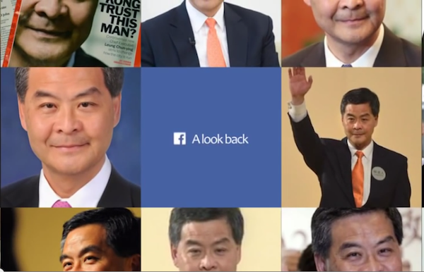 Now, Hong Kong gets its very own CY Leung Look Back spoof, and it’s pretty funny, with highlights such as him admitting that “I am not at all suitable for politics” (from an interview on radio in 1988), which is “Liked” by 5 million people in the spoof (or half of Hong Kong’s population) and a picture of him sweating in a debate when Henry Tang exposed his lie. The creator, Pody Lui, based in Canada, suggested viewers to pay close attention if they want to grasp all the subtle yet witty references.