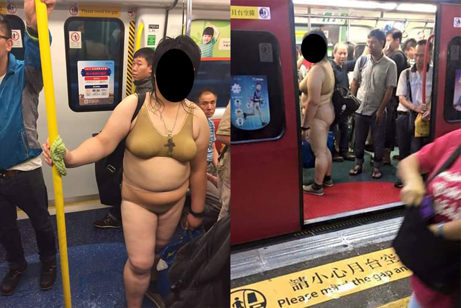 Sometimes, weird stuff happens on the MTR. Like when a rain-drenched woman shows up wearing nothing but her nude underwear, a cross around her neck, and shoes.