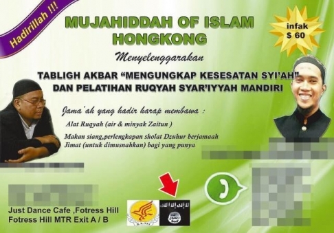 Yesterday, a group calling itself the Mujahiddah of Islam Hong Kong denied it was recruiting for ISIS after it circulated a flier for a prayer meeting that seemed to bear the black flag of the terrorist group.