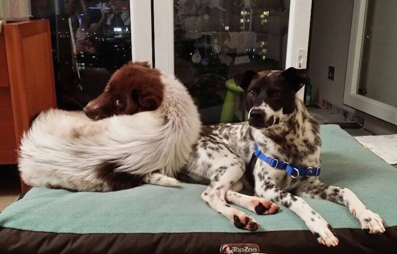 The foster parents of this distinctively spotted Hong Kong mutt are desperately searching for him, and his sister Gaby (on the left in the photo below) is sure to be missing him too.