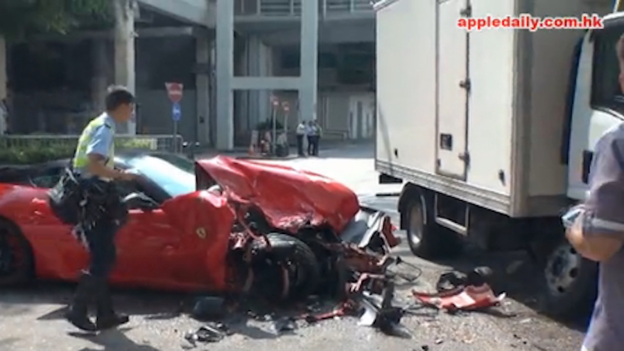 Yesterday morning a Ferrari 599 F1 was severely damaged in a collision with a frozen meat truck outside the Sha Tin Racecourse.