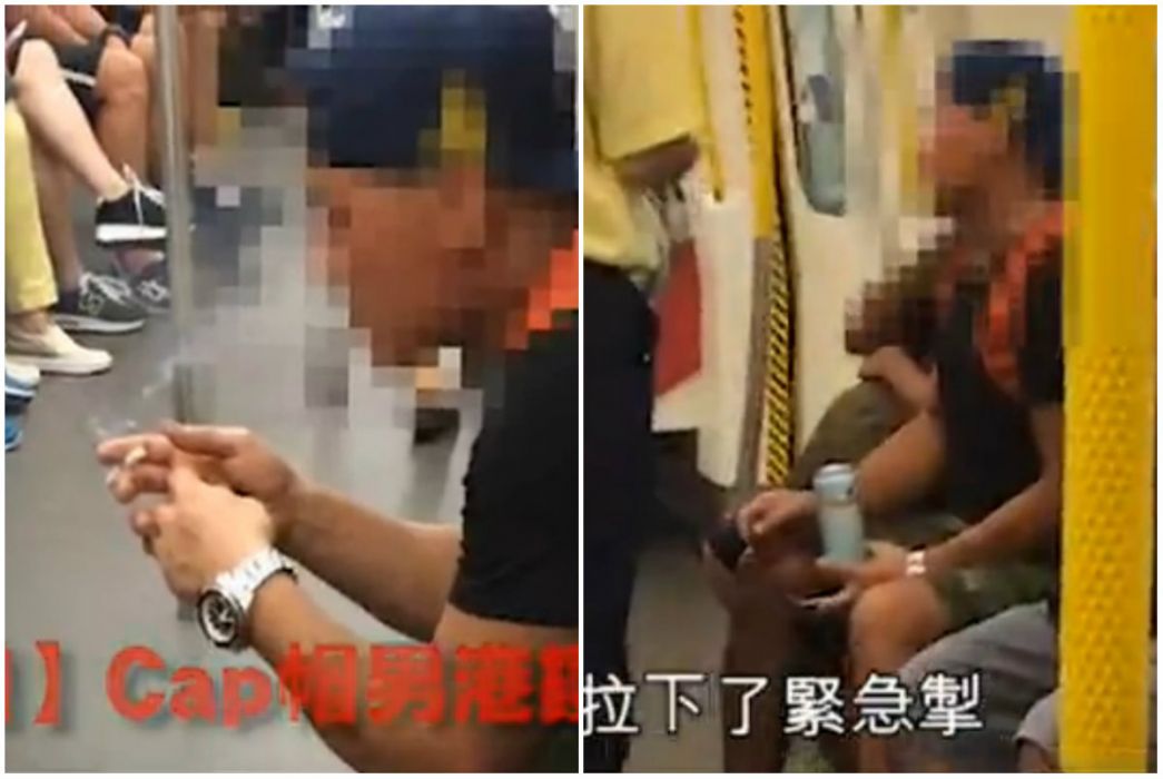 A man was filmed filling an MTR train with cigarette smoke and bad vibes over the weekend, sparking the fury of his fellow passengers.