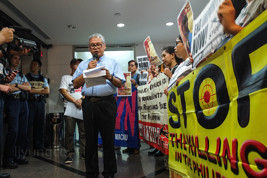 “These are just some of the incidents of human rights violations that we believe should be thoroughly and speedily investigated and the perpetrators vigorously prosecuted and brought to justice,” Eman Villanueva, chairperson of Filipino Alliance Bayan Hong Kong & Macau, said.