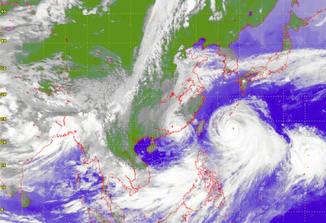 Three typhoons are swirling off the coasts of China and Japan today with the first set to directly hit Hong Kong.