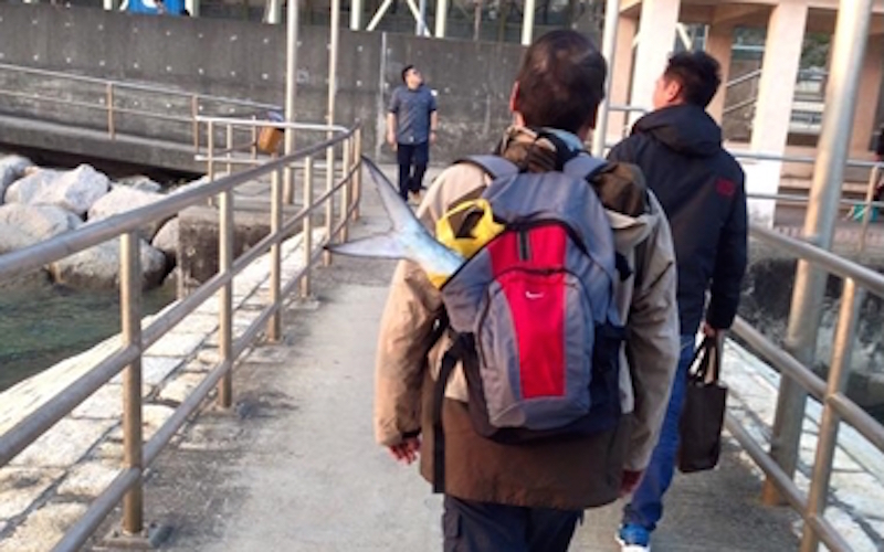 So when you’ve bagged a bigger fish than you bargained for and have no container large enough for it, you pop it in your backpack! So what if the tail sticks out – it just means you’ll get extra personal space on the MTR!