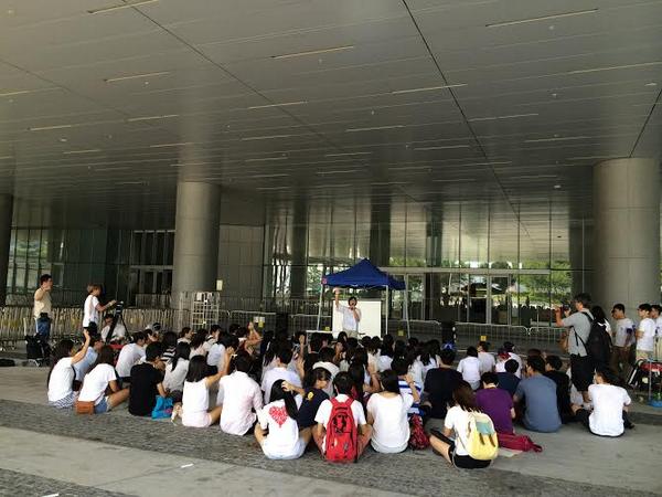 Photo: People gathered for a public lecture in front of LegCo this morning as part of the student boycott (Varsity CUHK via Twitter)