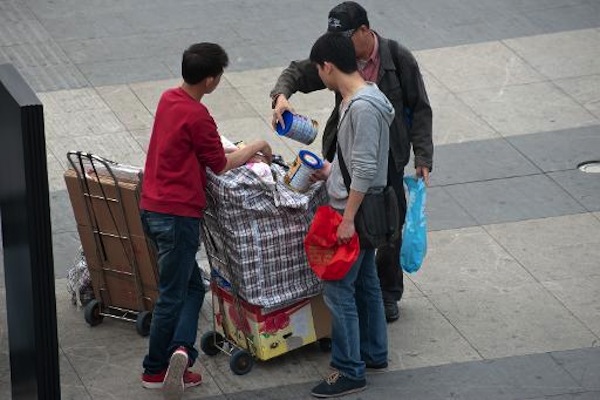 Chinese sell milk formula to dealers in Shenzhen, after crossing the border from Hong Kong