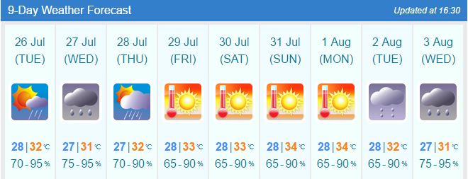 Meanwhile, the weather tomorrow is predicted to be mostly hot and sunny with a few squally periods thrown in for good measure. What else would you expect from a Hong Kong summer?