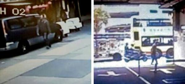 Hong Kong police release CCTV images of suspects on foot (L) and on a motorbike (R) near scene where the former editor of a liberal newspaper was stabbed on February 27, 2014 / Hong Kong Police, AFP