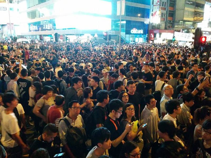 In Mongkok, a busy shopping hub, police were called after a car drove at high speed past crowds of protesters, though no one was reported injured.