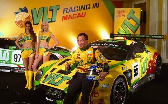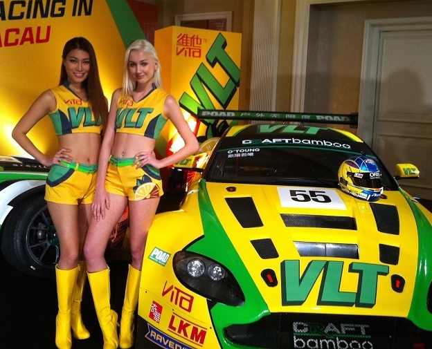 The 2005, 2006 and 2008 Macau Grand Prix GT Cup winner was beaming with excitement at the unveiling of his dazzling yellow and green Aston Martin V12 Vantage GT3 race car – distinctly branded by sponsor VLT (Vita Lemon Tea) – during a press conference at the Marco Polo Hong Kong Hotel on Tuesday. The two stunning models kitted out in matching colours got their fair share of attention too.