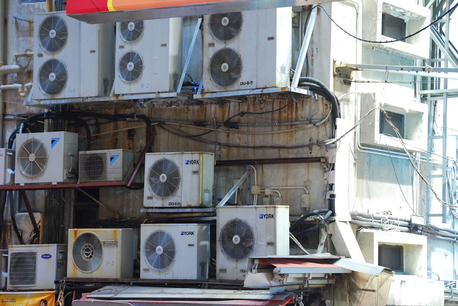 To be fair, Hong Kong’s high-rise design doesn’t help the issue, as hundreds of defective air conditioners are stacked above one another for 30+ floors, all working together to produce a waterfall of gross air con sweat.