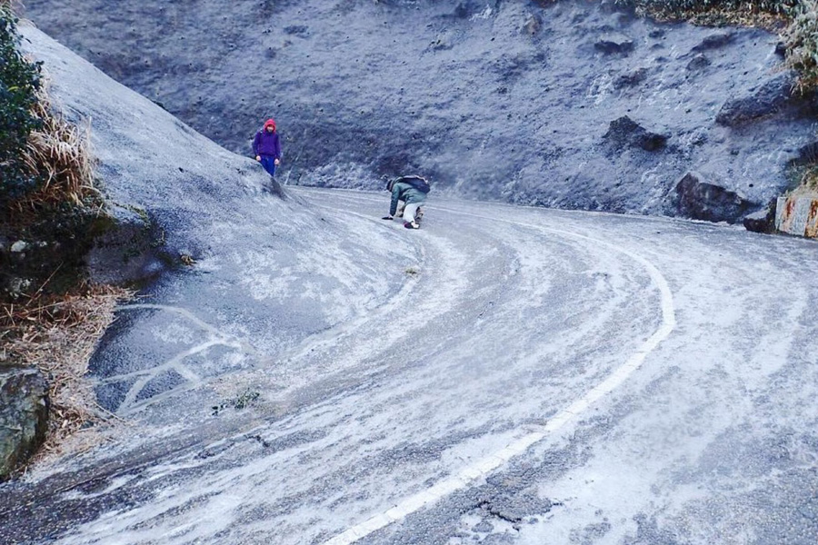 After being hit by the coldest weather Hong Kong has seen in decades, locals, dubbed “frost tourists”, hiked up Tai Mo Shan, the territory’s highest peak, hoping to catch sight of the rare phenomenon.