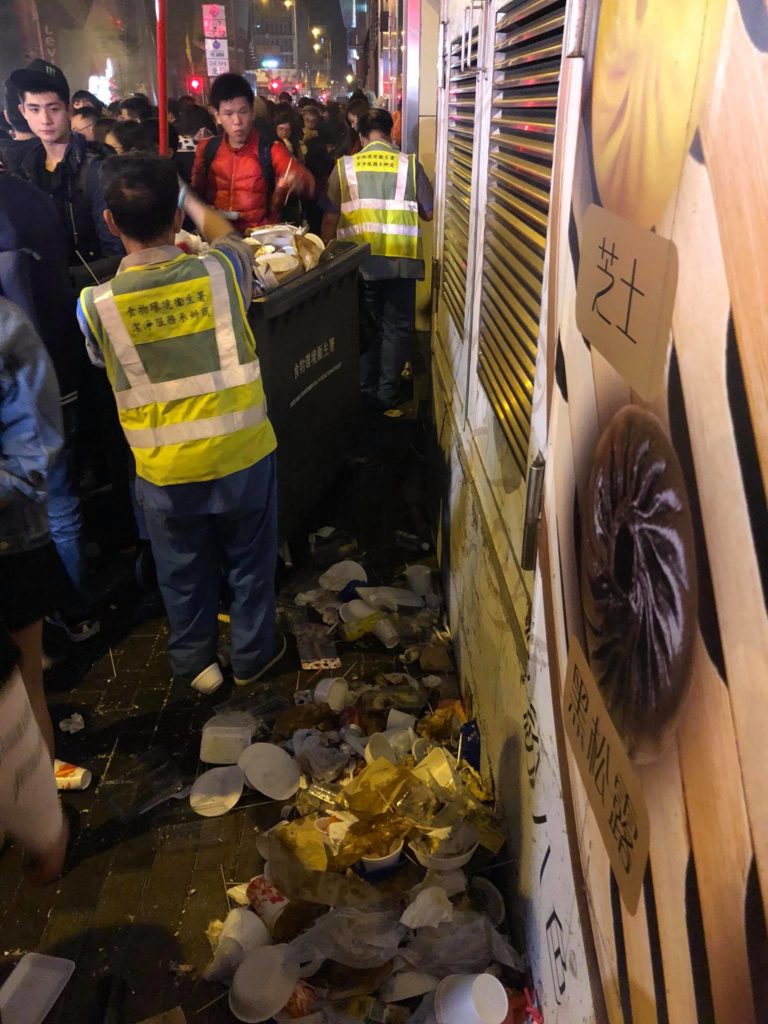 Others worried that the trash would prompt the authorities to step in and clamp down on the food market again, two years after the Fishball Revolution, which saw the streets of Mong Kok rocked by violent protests because of a conflict between protesters and authorities over the clearing of unlicensed street hawkers during Chinese New Year.