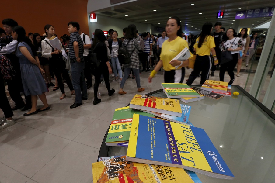 Students prepare for the SAT at Asia-World Expo. Photo: Bobby Yip/Reuters