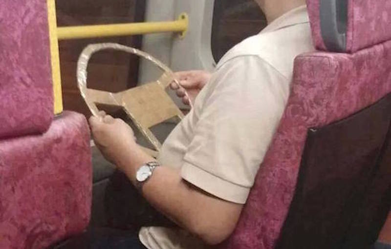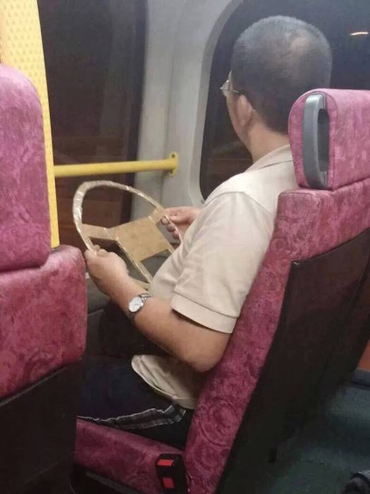 He made a cardboard steering wheel and secured the prime seat at the front of the bus’ upper deck, thus allowing him to play his own version of The Fast and the Furious: Hong Kong Drift.