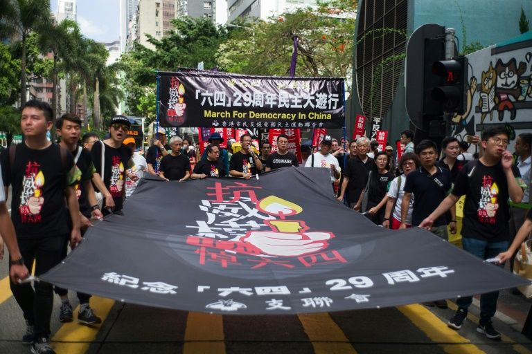 Hundreds marched through Hong Kong on Sunday ahead of the 29th anniversary of China’s crackdown on democracy protesters in Beijing’s Tiananmen Square.