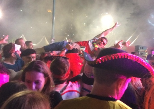 Ireland’s most capped player and record try-scorer was snapped in what looks to be one of the official after party tents, riding like a boss above a sea of adoring fans/totally pissed off people.
