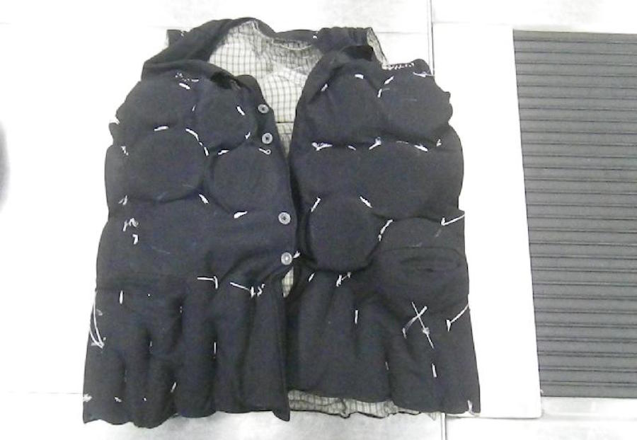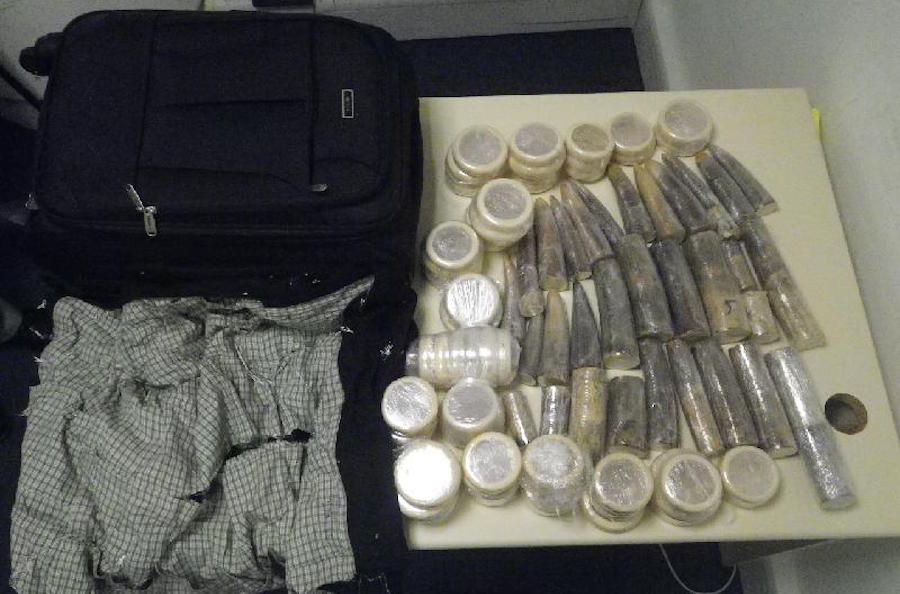 Cut-up elephant tusks, worth about HKD150,000, were found inside a clunky-looking tailor-made vest when the passenger went through customs. Maybe he was supposed to wear it but found it too uncomfortable?