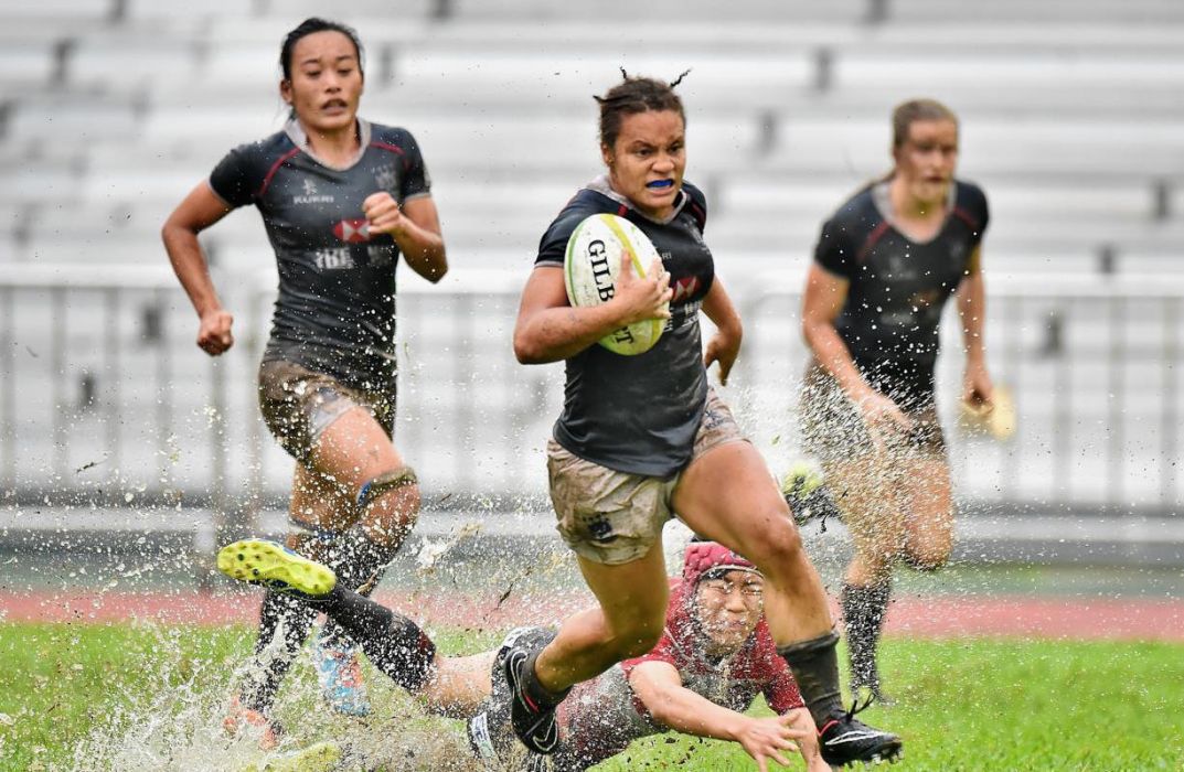 The women duked it out on a muddy pitch, with Japan taking home the title with a score of 27-12.