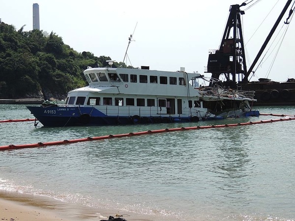 The recovered Lamma IV after the accident, ferry that capsized causing the deaths of 39 Hongkongers