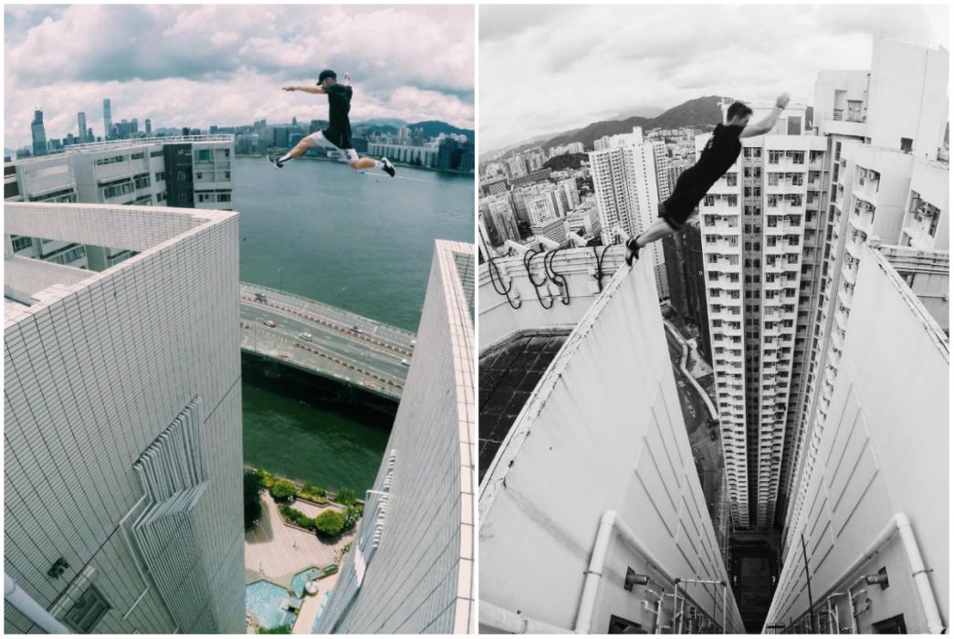 This video of a man jumping from the roof of one towering Hong Kong building to another has got us mildly impressed and extremely horrified.