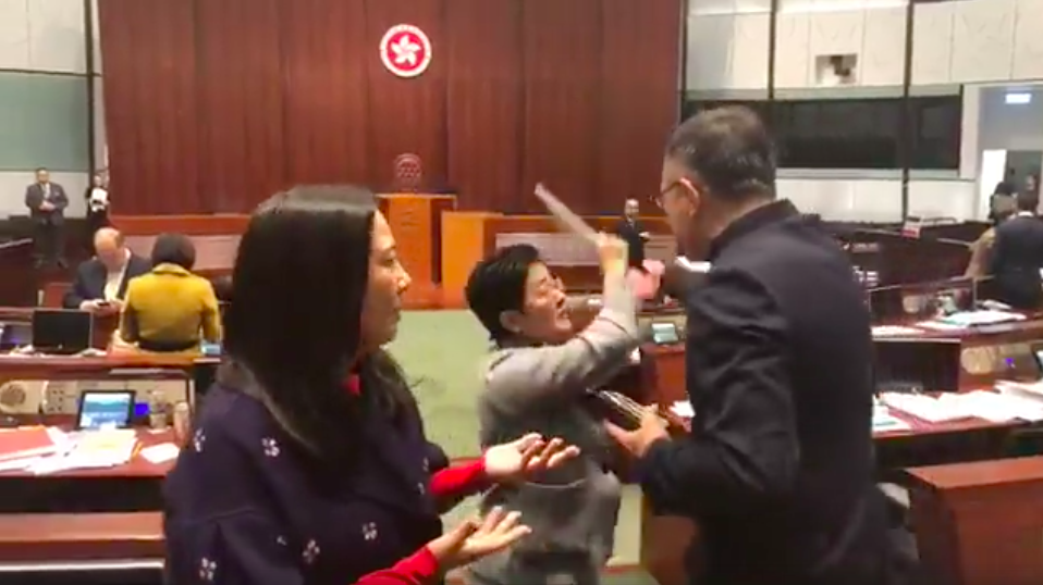 The meeting, which began at 11am, was suspended an hour later and pro-Beijing lawmakers decided to stream the spectacle to viewers.