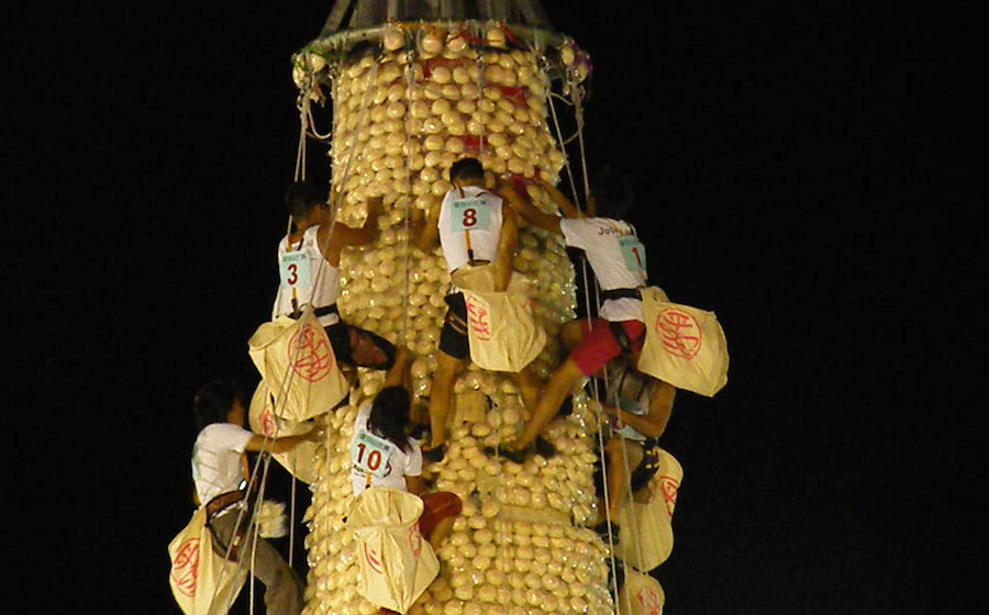 Besides the registered teams of schools, government departments and businesses, the general public (yep, that’s you), can get their hands sticky this weekend at the Cheung Chau Jiao Festival.