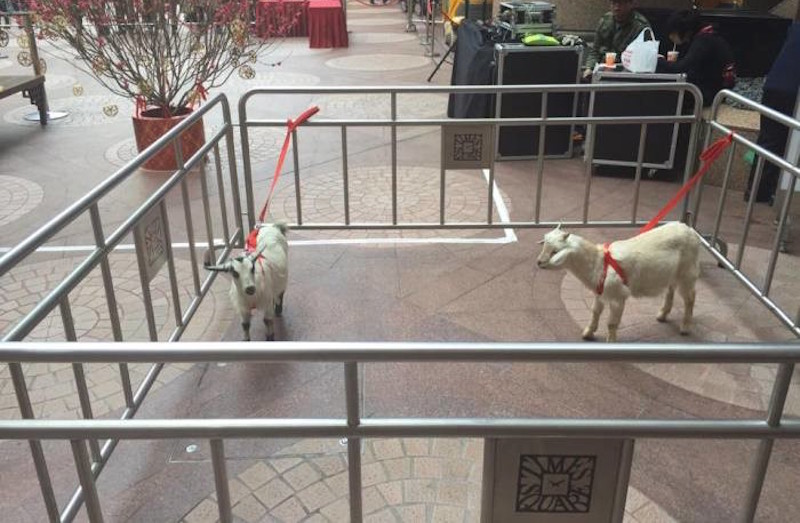 So when it’s the year of the goat, you take advantage of the fact that it’s a cute and relatively manageable animal, and roll in live ones to attract shoppers!