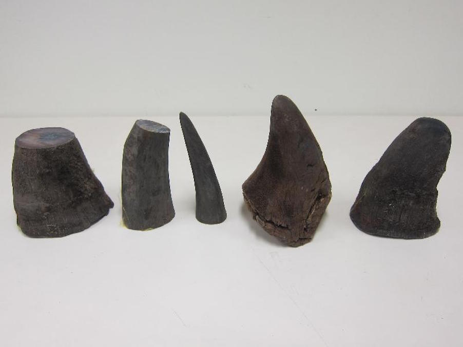 The rhino horns concealed as “resin crafts” found in a package on May 14. Photo: Hong Kong Customs