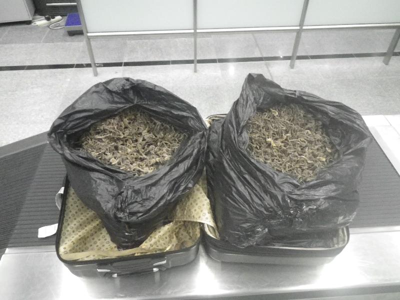 On the same day as the rhino horn seizure, customs officers arrested a passenger arriving from Egypt after they found 14 kilos of dried seahorses in his check-in baggage.