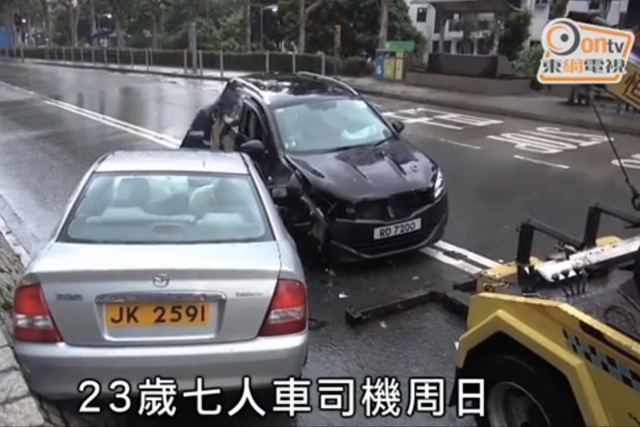 At 5am, a man surnamed Lin reportedly lost control while driving towards Tai Po Centre due to slippery conditions caused by the rain, crashing his minivan into a car driven by a woman, surnamed Chan, reports the Sun.