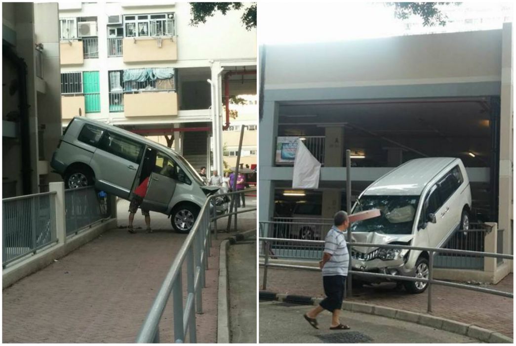 At 7:40am today, a minivan flew out of a carpark in Choi Hung Estate and landed on Tse Wai Avenue.