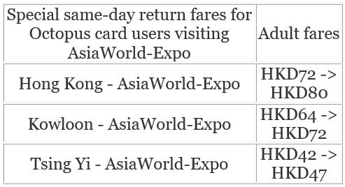 The proposed fare hikes range from 8.3 percent to 20 percent, with an average increase of 10.3 percent (complete fare breakdown below). Under the proposal, one-way trips from Hong Kong Station to the AsiaWorld-Expo would cost HKD110 — in comparison to the current fare of HKD100 — for adult ticket holders, while round-trip tickets would go up by HKD30, from HKD180 to HKD210.