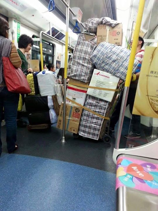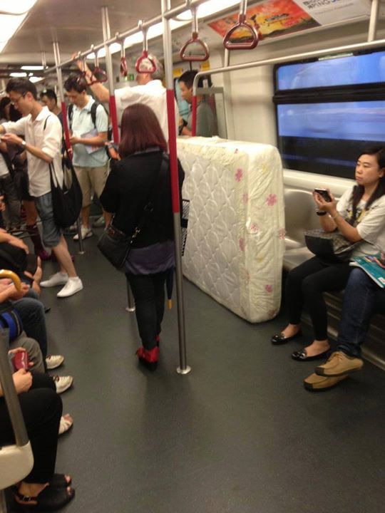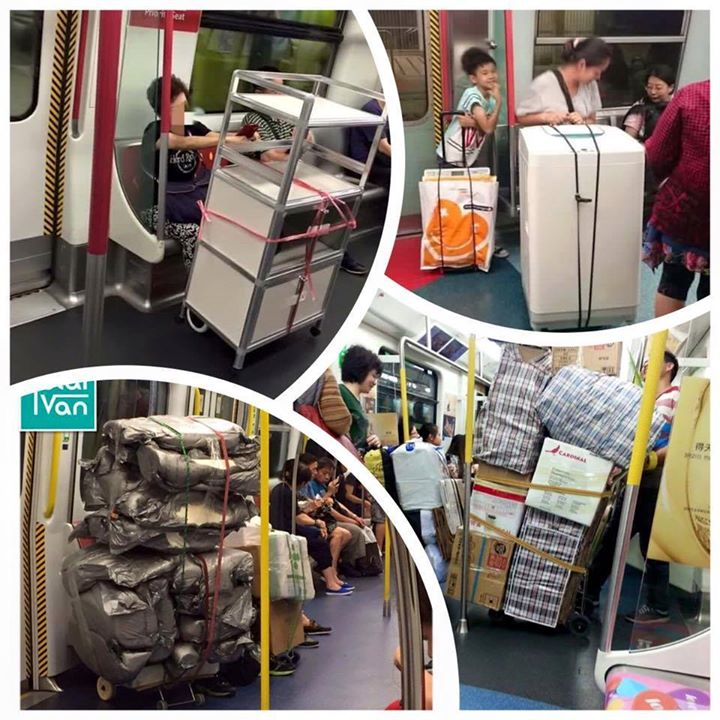To prove this point, dozens of pictures showing people travelling on MTR trains with huge packages of fruit, luggage, and even a washing machine and a mattress were uploaded.