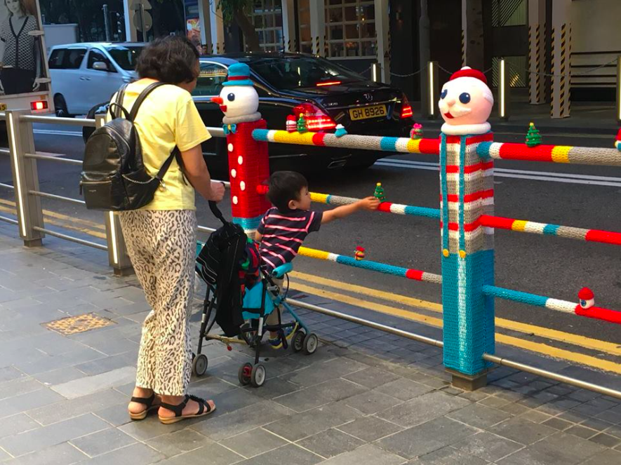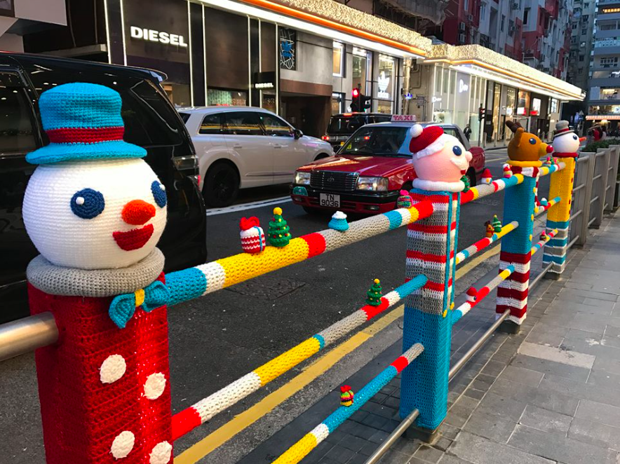 It’s beginning to look a lot like Christmas in Causeway Bay thanks to a festive yarn bombing on stretch of handrail in a busy shopping district.