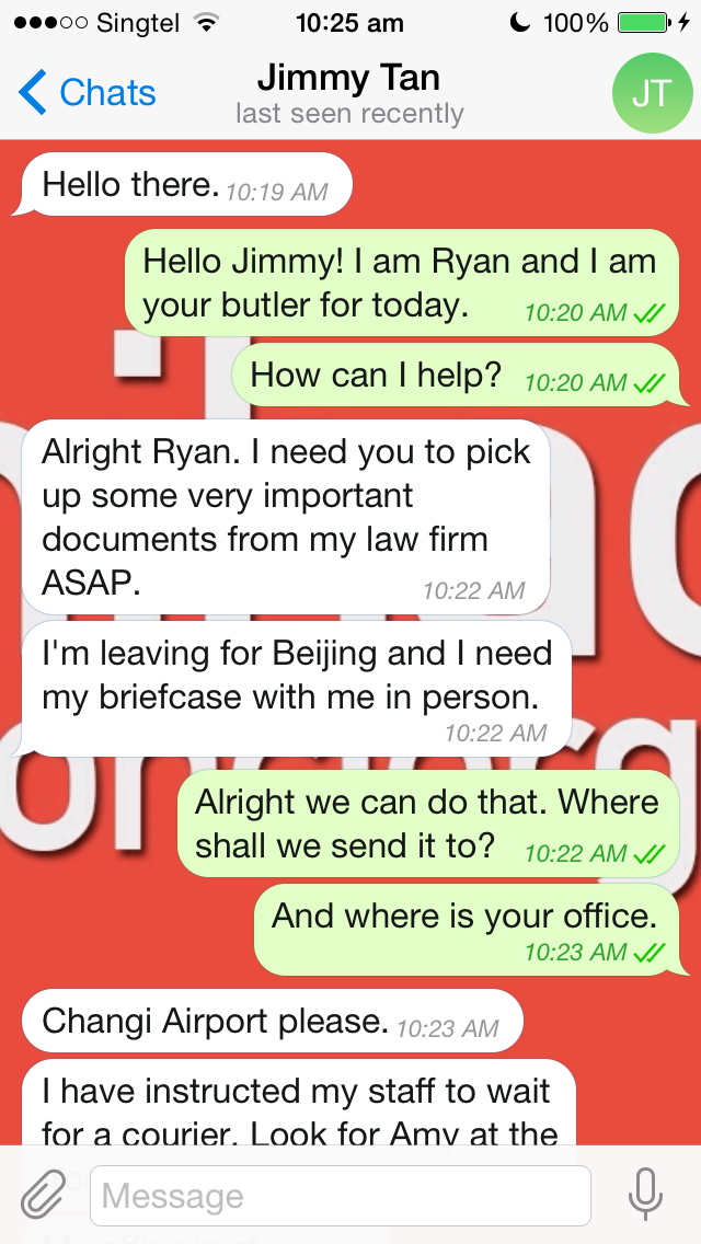 All you have to do is text (+65) 9241-1341 using the Telegram app (available for iOS and Android), and you will be charged according to the cost of each task. (The company claims that the service is completely free.)