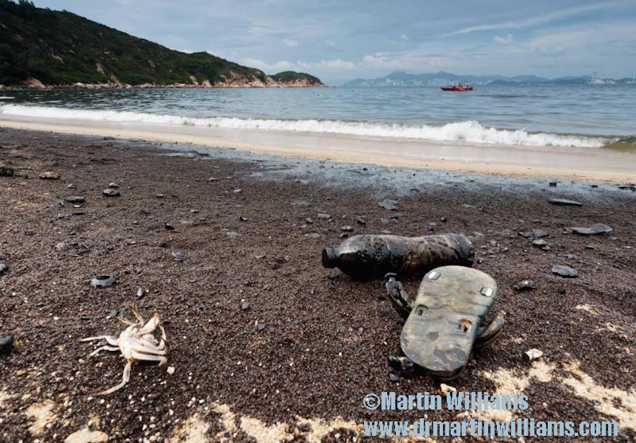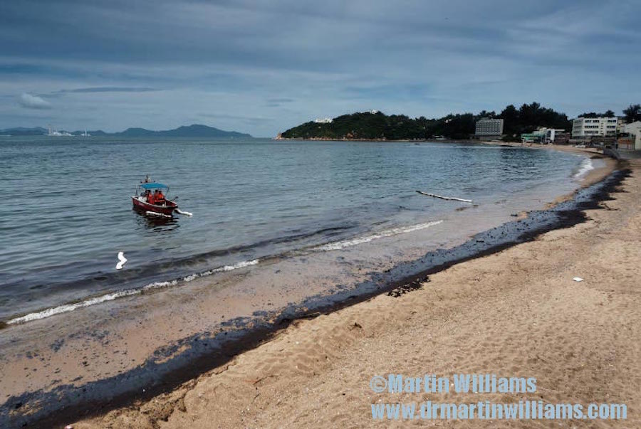 Martin Williams, a local conservationist, told us today that he has also learned of an oil slick at Silvermine Beach on Lantau Island as well, adding that perhaps there are “extensive woes”.