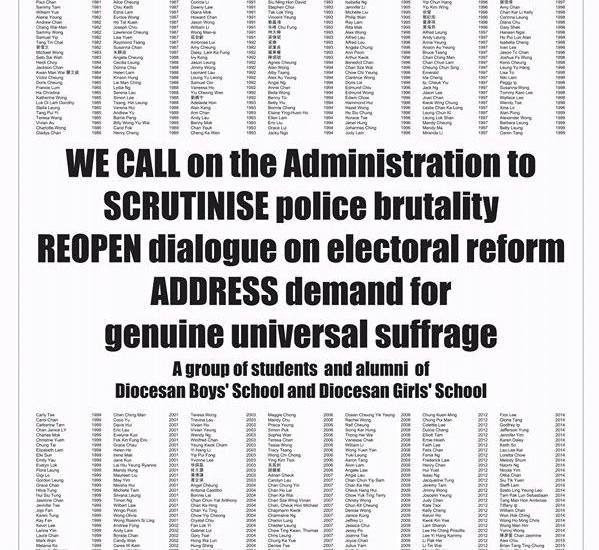 Originally booked by a group of Diocesan Boys’ and Girls’ School students, the advertisement called for scrutiny on police brutality and for demands for universal suffrage to be properly addressed. However, when the cost of the advertisement was hiked up by HKD102,000 within half an hour of the submission deadline, it was pulled by the students, transferred to Ming Pao, and the SCMP immediately went under fire.