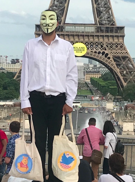 For the massacre’s 29th anniversary, Badiucao invited men and women around the world to pose as the iconic protester and carry two tote bags bearing one of five images or terms that have been censored on the mainland.