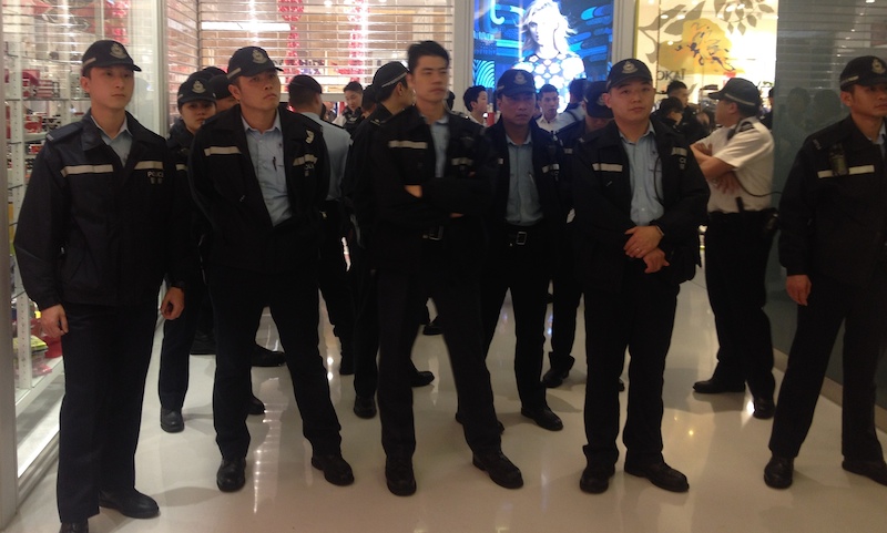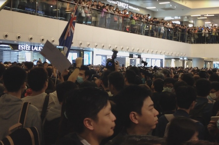Clashes between the police and protesters occurred once the crowd entered the confined Gold section of the shopping mall, with profanities exchanged as the atmosphere heated. Anti-police slogans, including the common “black police”, were chanted as officers further attempted to cordon off the main walkway.