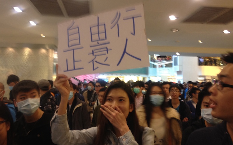 HK Indigenous, one of the activist groups that co-organised last week’s rally, this time mobbed the New Town Plaza in Sha Tin, a popular destination for Chinese shoppers.