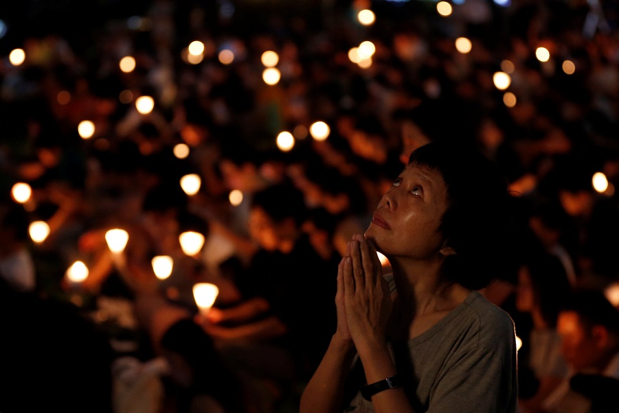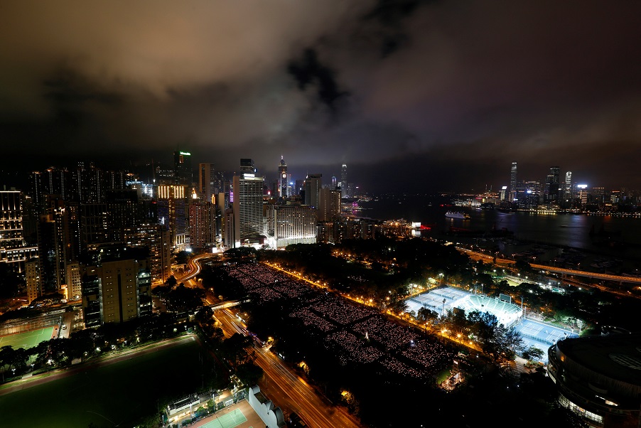 Tens of thousands gathered at a candlelit vigil in Hong Kong yesterday night to mark 28 years since China’s bloody Tiananmen Square crackdown, but the annual event is struggling for support among younger generations.