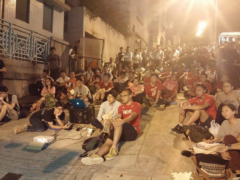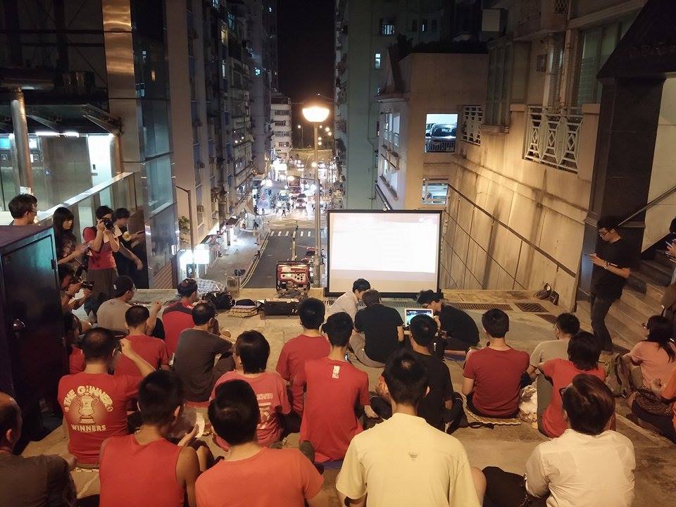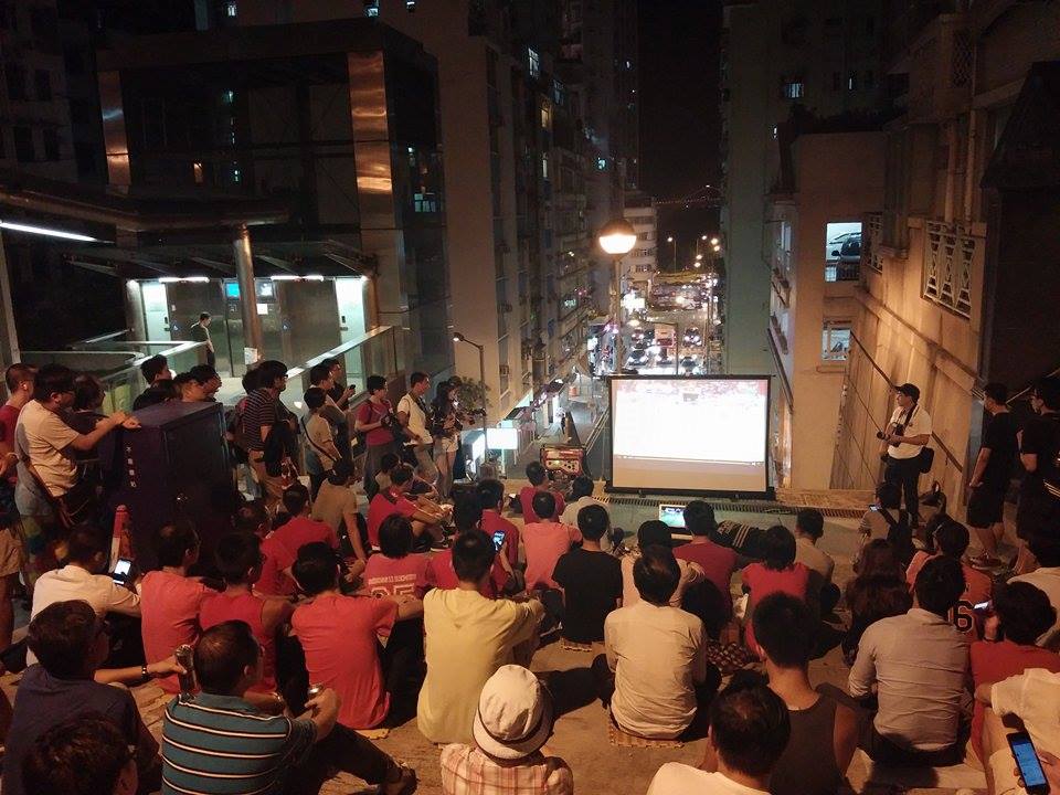 Ken Lai Sze-kui and Kelvin Lui Yat-lam, who have been featured on Coconuts before due their vision for a closer community in Hong Kong’s Western District, organised a public viewing of the match with the simplest tools – a laptop with a projector, public wifi, and a crowd.